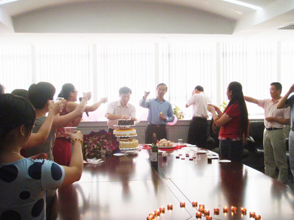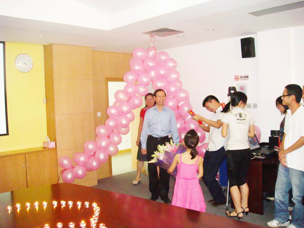 在溫情的八月迎來了華遠(yuǎn)集團(tuán)創(chuàng)始人嚴(yán)文亮先生的生日,華遠(yuǎn)集團(tuán)員工自發(fā)為嚴(yán)總舉辦了一個神秘而又驚喜的生日Party。粉色的氣球、雙心相交的生日蠟燭、醇香的美酒、誘人的蛋糕,點(diǎn)燃了現(xiàn)場的氣氛也傳遞出了參與者的喜悅。在舉杯共慶之時大家道出了自己內(nèi)心最真誠的祝福。8月份過生日的員工,幸運(yùn)地同嚴(yán)總共同分享這份溫馨與快樂,并合影留念。