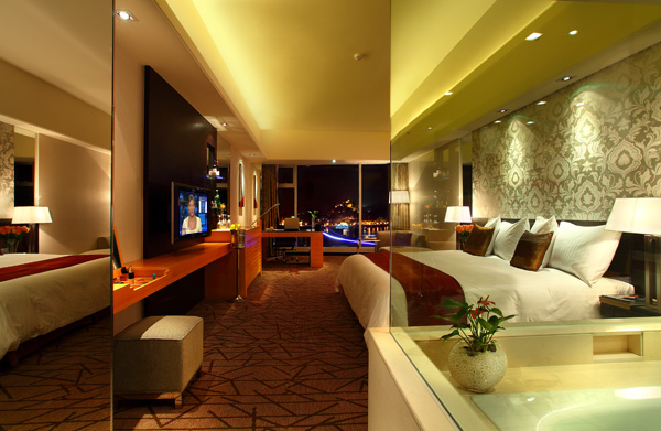 十八層——二十五層:為行政樓層,總客房數(shù)量為154間,海景房為73間。其中23層及24層為行政酒廊。
