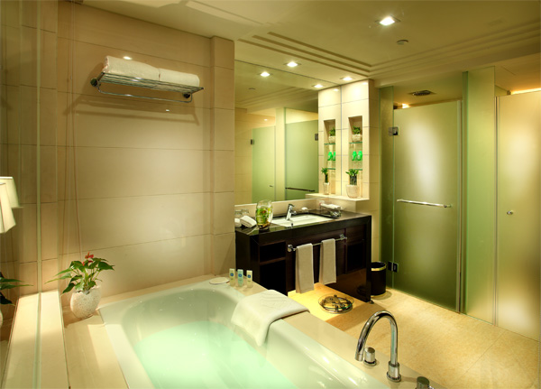 三層:左側(cè)為4間全海景小宴會(huì)廳,每間可容納50-60人用餐,當(dāng)酒店入住率高達(dá)100%或以上時(shí),可將本區(qū)域開放作為餐廳;右側(cè)為中餐廳,包括一個(gè)公共大廳及15個(gè)包廂,其中11間為全海景房,平均每間的容納人數(shù)為8-12人,中餐廳的總?cè)菁{人數(shù)為176人。群樓部分為大宴會(huì)廳,可容納人數(shù)至少為1070人,并設(shè)有舞臺(tái),準(zhǔn)備間,先進(jìn)的燈光及音樂控制設(shè)備,
