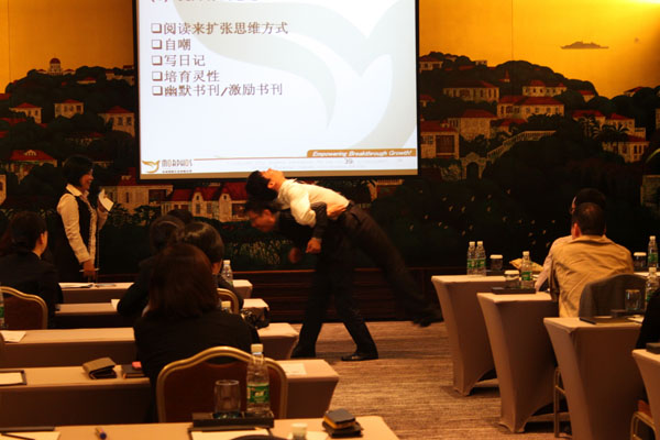 課程氛圍輕松,老師通過(guò)引導(dǎo)、測(cè)試等方法,找出大家各自的壓力來(lái)源及特質(zhì),對(duì)不同的壓力類(lèi)型進(jìn)行針對(duì)性的輔導(dǎo)。在“講出你心中的那句話”環(huán)節(jié)中,各位平時(shí)精干的管理者們,自然的流露出真性情,真正放下或正確疏解了自己的壓力,為明天的工作生活注入了更多的輕松與活力。