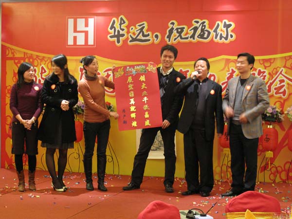 “2010年華遠(yuǎn)集團(tuán)迎春晚會(huì)”于2月5日,在集團(tuán)旗下溫德姆和平國際廈門大酒店成功舉行。集團(tuán)高層領(lǐng)導(dǎo)與全體員工及家屬歡聚一堂共賀新春。氣勢恢弘的大聯(lián)唱拉開了晚會(huì)的序幕,一曲《華遠(yuǎn)祝福你》,唱出了全體華遠(yuǎn)人的心聲。董事長熱情洋溢的發(fā)言,肯定過去、展望未來,為企業(yè)指明了前進(jìn)方向,讓華遠(yuǎn)集團(tuán)全體員工對2010年的新挑戰(zhàn)、新目標(biāo)充滿了希望與期待。工會(huì)主席代表全體員工發(fā)表新年倡議,號(hào)召大家攜手并進(jìn)譜寫新的輝煌。優(yōu)秀表彰、資深員工答謝,對為華遠(yuǎn)做出突出貢獻(xiàn)的員工給予了高度的肯定。集團(tuán)各部門、各分公司精心準(zhǔn)備、異彩紛呈、喜氣洋洋的大拜年,展現(xiàn)出每一位員工對企業(yè)的真誠祝福。整場晚會(huì)氣氛熱烈、高潮迭起,優(yōu)美綺麗、精彩紛呈的各類節(jié)目,不但展現(xiàn)出華遠(yuǎn)人卓越的才藝,同時(shí)還體現(xiàn)了華遠(yuǎn)集團(tuán)強(qiáng)大的團(tuán)隊(duì)凝聚力和良好合作精神。在這樣一個(gè)溫馨和諧、充滿活力的大家庭中,大家團(tuán)結(jié)一致、積極進(jìn)取,讓華遠(yuǎn)之樹根深葉茂,茁壯成長!